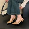 Sandálias Retrô de Bico Fechado da Nova Moda Primavera/Verão 2025 para Mulheres Sandálias Versáteis de Tira com Salto Bloco e Laterais Vazadas