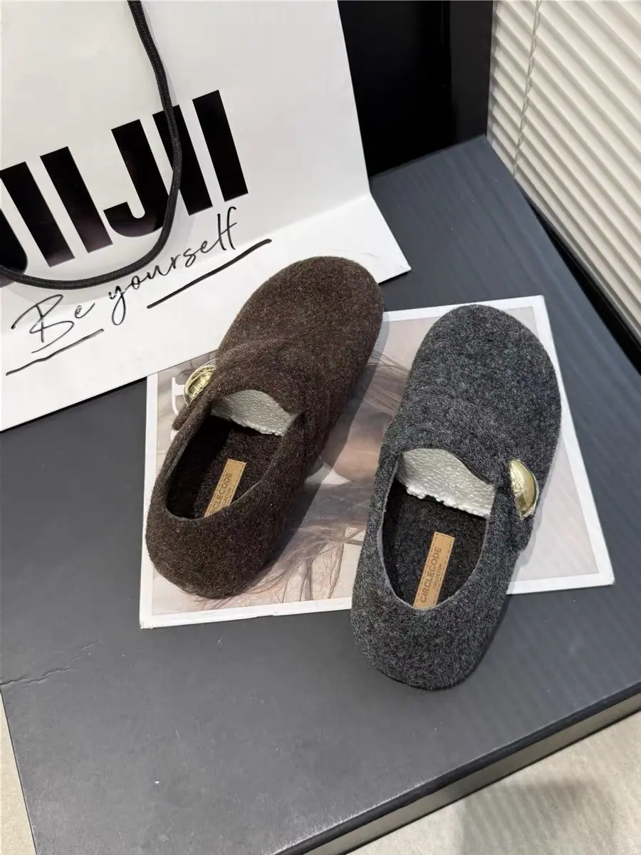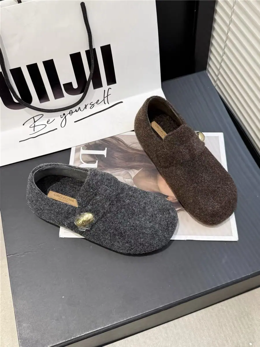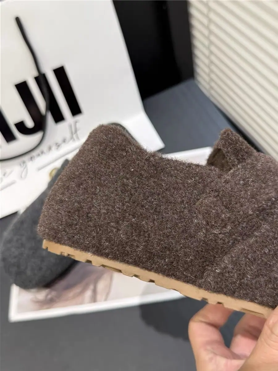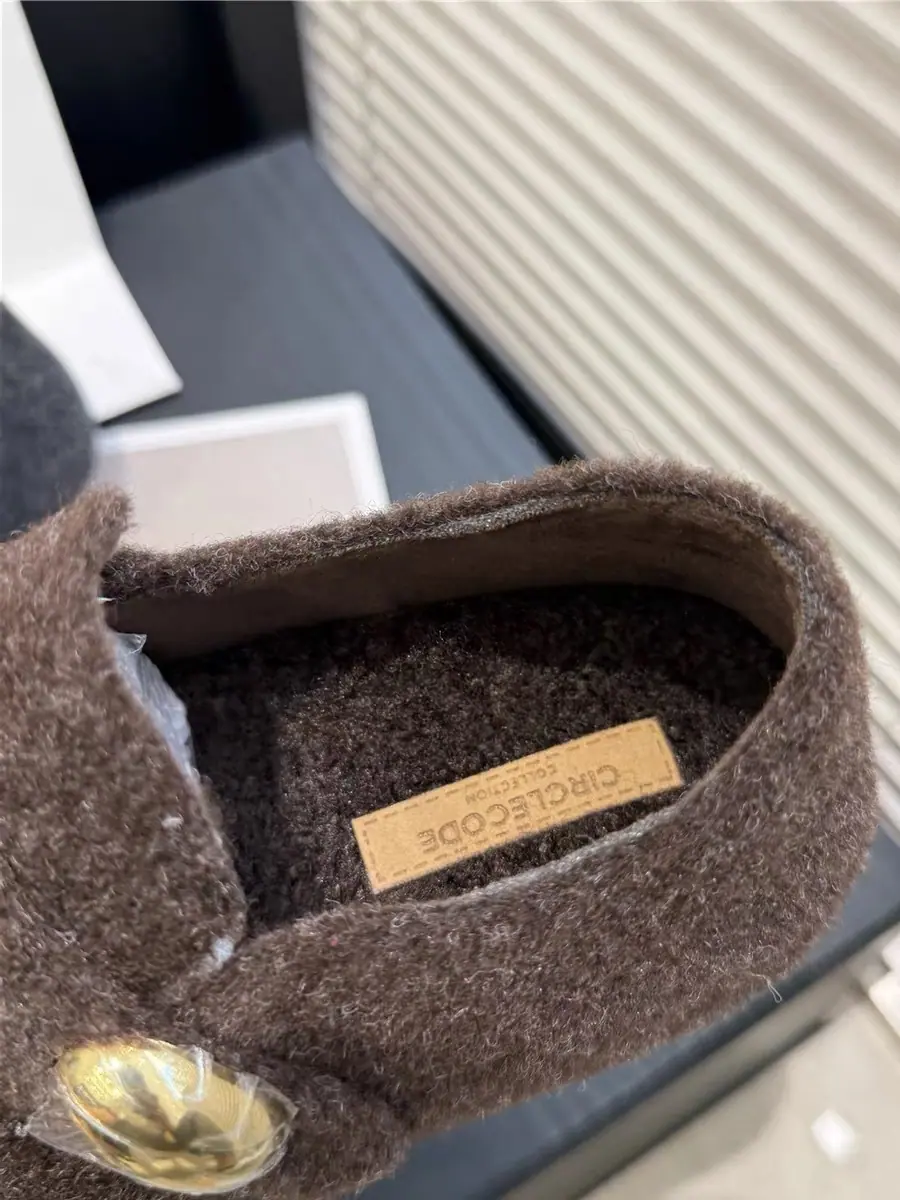 Sapatos únicos peludos retrô estilo Mori mulheres 2025 novo outono e inverno macio sola plana sapatos de algodão tira única mais veludo sapatos Mary Jane