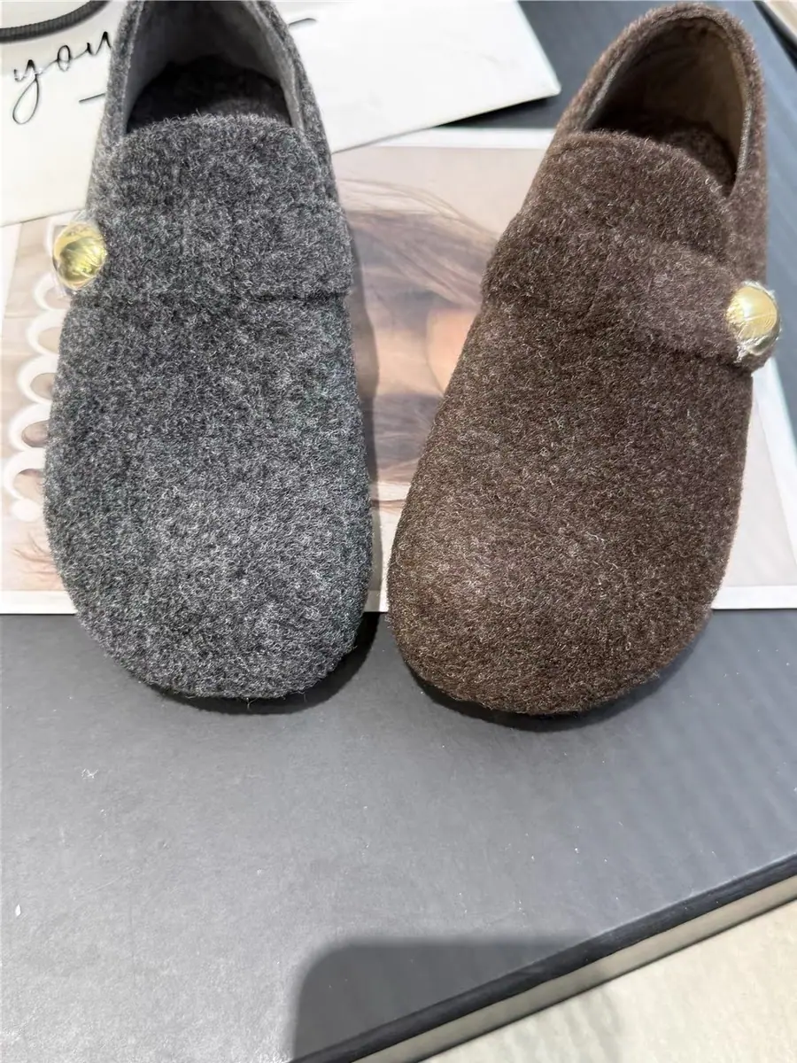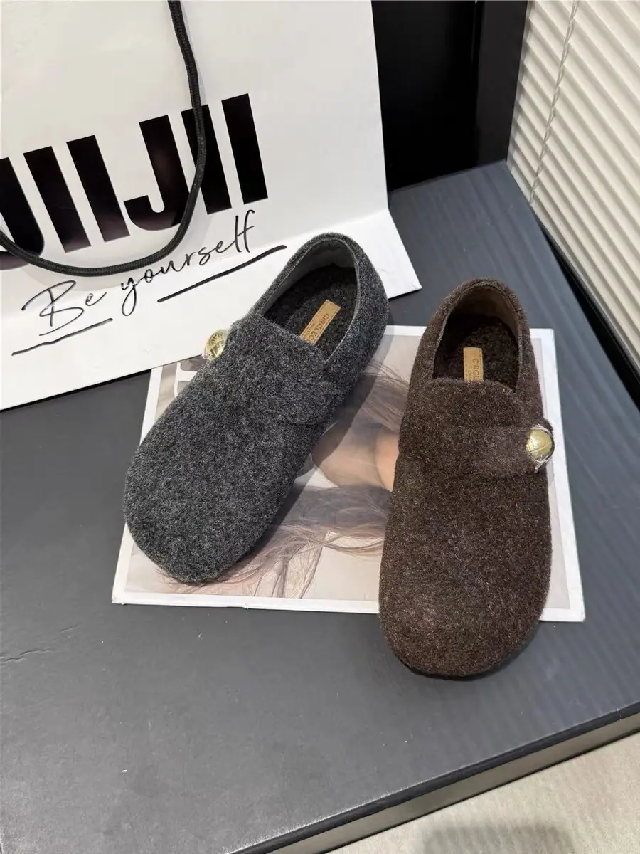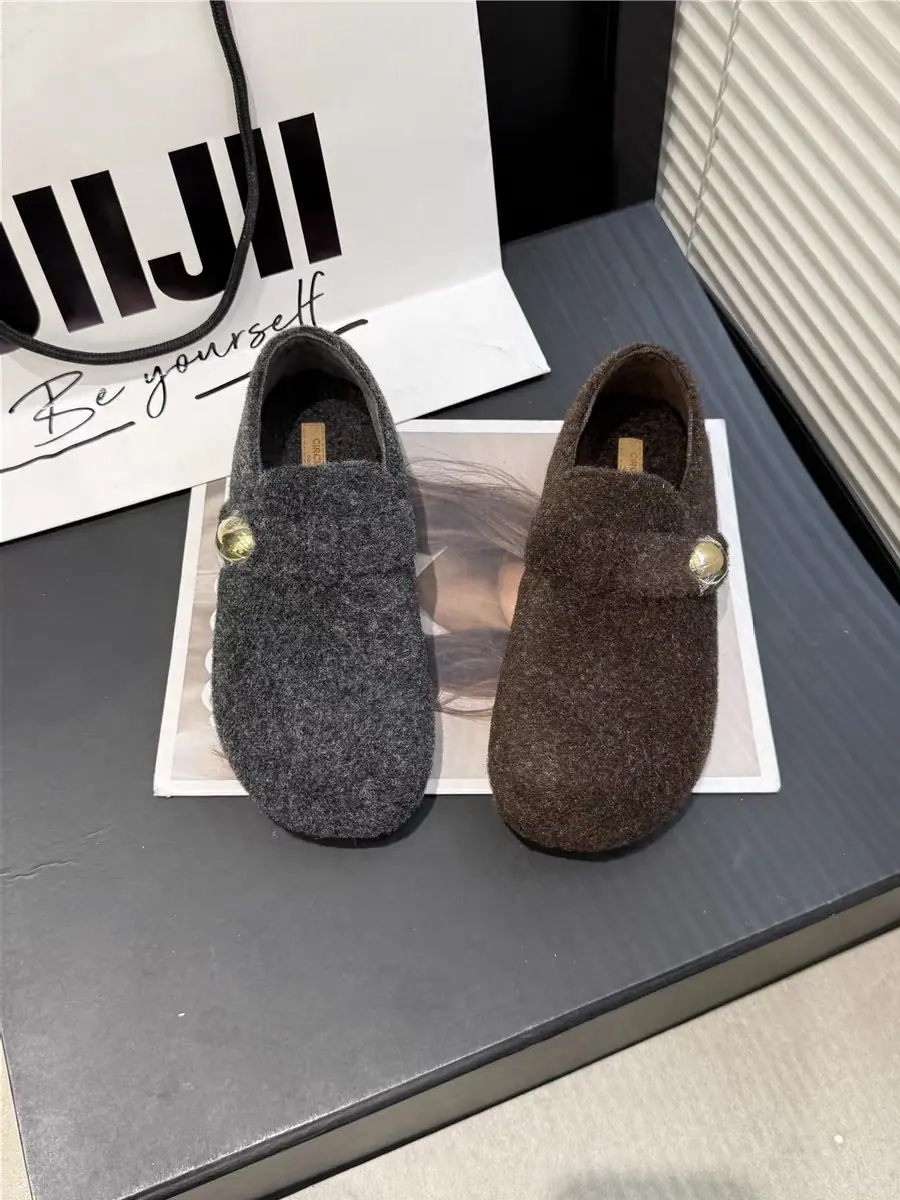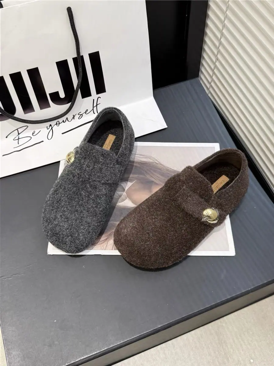 Sapatos únicos peludos retrô estilo Mori mulheres 2025 novo outono e inverno macio sola plana sapatos de algodão tira única mais veludo sapatos Mary Jane