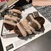 Pantufas Peludas para Uso Externo Feminino 2025 Novas Pantufas de Plataforma de Sola Grossa Pantufas Super Estilo Ocidental Pantufas de Algodão Ajustáveis para Pés Gordos e Magros