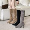 2025 Novo Outono e Inverno Europeu e Americano Bico Fino Camurça Salto Alto Agulha Moda Francesa Botas Sexy de Beleza