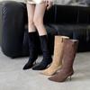 2025 Novos Botas Europeias e Americanas de Camurça Bico Fino Salto Agulha Moda Francesa Sexy Beleza Outono e Inverno