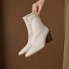 Botas Femininas Elegantes Retrô Francesas de Salto Alto Elásticas Slim 2025 Outono e Inverno Bico Fino Salto Grosso Versáteis Curtas