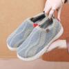 Outono 2025 Novo Respirável Peludo Listrado Solado Macio Antiderrapante Sapatos de Mãe Slip-On Moda Casual Sapatos Preguiçosos para Mulheres