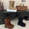 Compre Botas de Camurça Plissadas com Cano de Bico Quadrado Estilo Coreano para Mulheres 2025 Outono e Inverno Nova Moda Versátil Manga Salto Grosso no atacado no Joom.pro