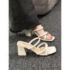 Pantuflas de cuña para usar en el exterior 2023 Verano Nuevo Estilo de Moda Tacón Grueso Pequeño Sandalias de Tira Fina Huecas Modernas
