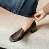 Sapatos de Salto Bloco Baixo Elegantes de Bico Redondo, Estilo Moda de Nicho, Boca Rasa, Slip-On de Couro para Mulheres, Novidade Outono 2026, 4,5cm