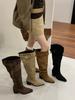 Design de Nicho 2025 Novas Botas de Salto Alto Bico Fino Botas Western Cowboy Retrô Salto Grosso Botas Longas para Mulheres