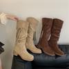 Novas Botas de Cavaleiro Retrô com Franjas e Saltos Grossos 2025, Botas de Cano Alto, Botas com Efeito Emagrecedor, Botas Western
