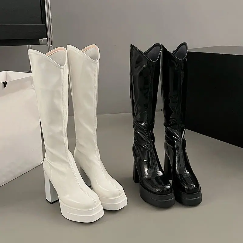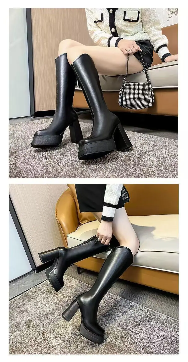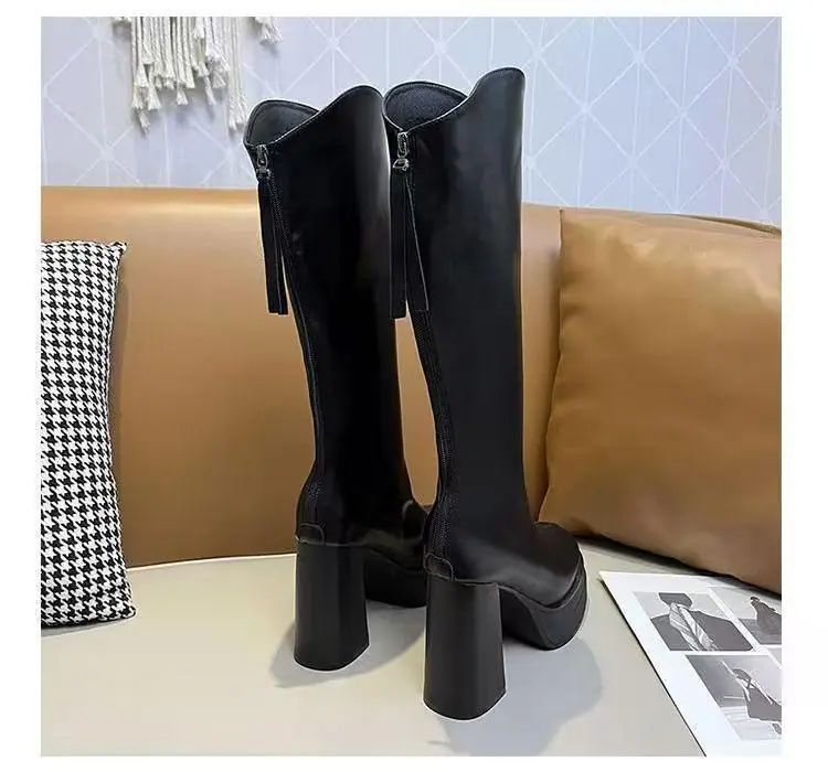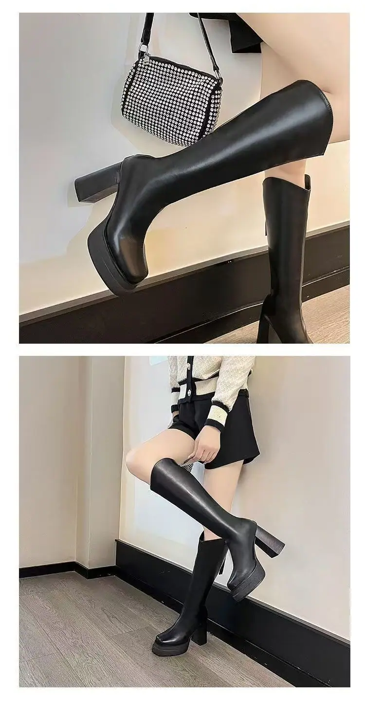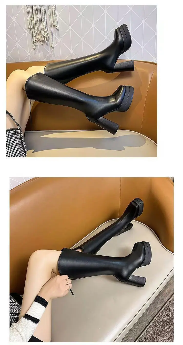 Botas Martin da moda e versáteis 2025 novo estilo para mulheres baixinhas acima do joelho sola grossa que aumenta a altura salto grosso botas femininas de cano alto