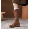 Botas Cavaleiro de Salto Grosso Vazadas Retrô para Mulheres 2025 Outono e Inverno Estilo Étnico de Estação Europeia Salto Grosso Cano Médio Botas Workwear para Mulheres