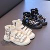 Sandálias para Meninas Verão 2025 Novas Sapatos Infantis Médios e Grandes Solado Macio Sapatos de Princesa Estilo Ocidental Sandálias Romanas Trançadas