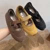 Sapatos Femininos Planos de Bico Redondo e Boca Rasa Versáteis Sapatos Mary Jane de Camurça com Forro Peludo, Mocassins Elásticos Quentes, de Lã