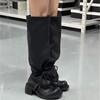 Botas de Salto Alto Chunky de Nicho Estilo Pós-Apocalíptico para Mulheres 2026 Novas Botas Longas Pretas Emagrecimento com Cadarço Moda Botas de Equitação