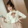 Camisa azul feminina design de nicho senso de luz familiar pequena início da primavera 2023 nova estilo ocidental camisa de chiffon com laço