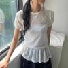 Coreano Ins Estilo Japonês Fofo Estrela de Cinco Pontas Recorte de Renda Manga Curta Gola Redonda Cordão Saia Babados Top de Manga Curta