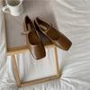 2023 Primavera/Outono Novo Estilo Japonês Mocassins de Bico Quadrado para Mulheres com Salto Grosso, Sapatos Franceses Retrô de Tira Única com Fivela Quadrada para Mulheres