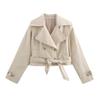 Atacado de roupas femininas de comércio exterior estilo europeu e americano primavera novo casaco corta-vento curto com cinto trespassado