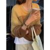 Outono e Inverno Estilo Coreano Preguiçoso Suave Encerado Suéter Novo Estilo Gentil Solto Gola Redonda Pulôver Listrado Contrastante Tricotado Mulheres