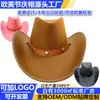 Chapéu de Cowboy Personalizado com Tachas Halloween Preto Redondo Tachado Chapéu de Festa Festa Carnaval Chapéu com Decoração de Fita