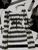 Ins Estilo Gótico Exportação Outono e Inverno Novo Gola Redonda Larga Manga Longa Listrado Punk Elegante Nicho Cruz Moda Y2K