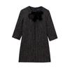 Primavera 2025 novo vestido de moda com textura decorativa de laço de gola redonda, saia para mulheres europeias e americanas, atacado
