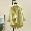 Camisa Dividida Feminina Manga Longa Primavera e Outono Nova Estilo Coreano Solta Emagrecedora Versátil Camisa Top
