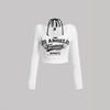 2025 Europeu e Americano Transfronteiriço Nova Moda Casual Estampa de Letras Gola Redonda Sexy Cintura Fina Top