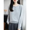 Transfronteiriço 2025 Início do Outono Novo Cardigan de Tricô com Renda de Lã Fina Gola Redonda Manga Longa Feminino Cor Pura Solto e Versátil