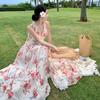 Vestido Floral Francês para Mulheres, Top Tubo de Celebridade de Alta Qualidade, Saia Irregular de Fada, Estilo Feriado Sexy Sem Costas Saia Longa