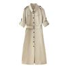 Jaqueta Corta-vento Elegante de Cintura 2024 Novo Estilo Lapela Abotoamento Simples Corta-vento de Comprimento até o Joelho Atacado de Roupas Femininas de Comércio Exterior