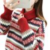 Suéter de Tricô com Gola Alta, Estilo Preguiçoso, Color Block, Gola Dupla, Novo Estilo Outono/Inverno 2026, Moda Solta para Mulheres