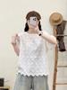 Camisa de Renda Bordada Francesa de Alta Qualidade Top Feminino de Manga Curta Verão 2025 Novo Estilo Solto, Estiloso, Único e Lindo