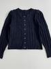 Gola Redonda Jacquard Abotoamento Simples Mistura de Lã Azul Marinho Tricô de Manga Comprida Feminino Estilo Transfronteiriço Europeu e Americano Cardigã Casual