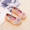 Sapatos de Princesa para Meninas 2025 Novo Estilo Coreano Laço Sapatos de Sola Macia para Meninas Sapatos de Cristal Infantil de Couro Pequeno