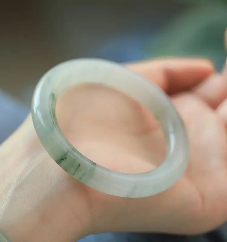 2023 Nova Pulseira de Jade Tianshan de Xinjiang Pulseira de Jade Dourada Cor Verde Gelo Pulseira Redonda para Presente de Aniversário da Namorada