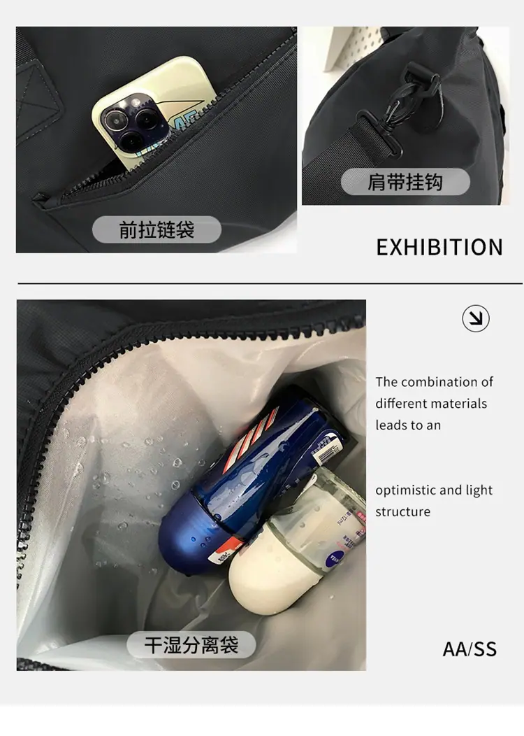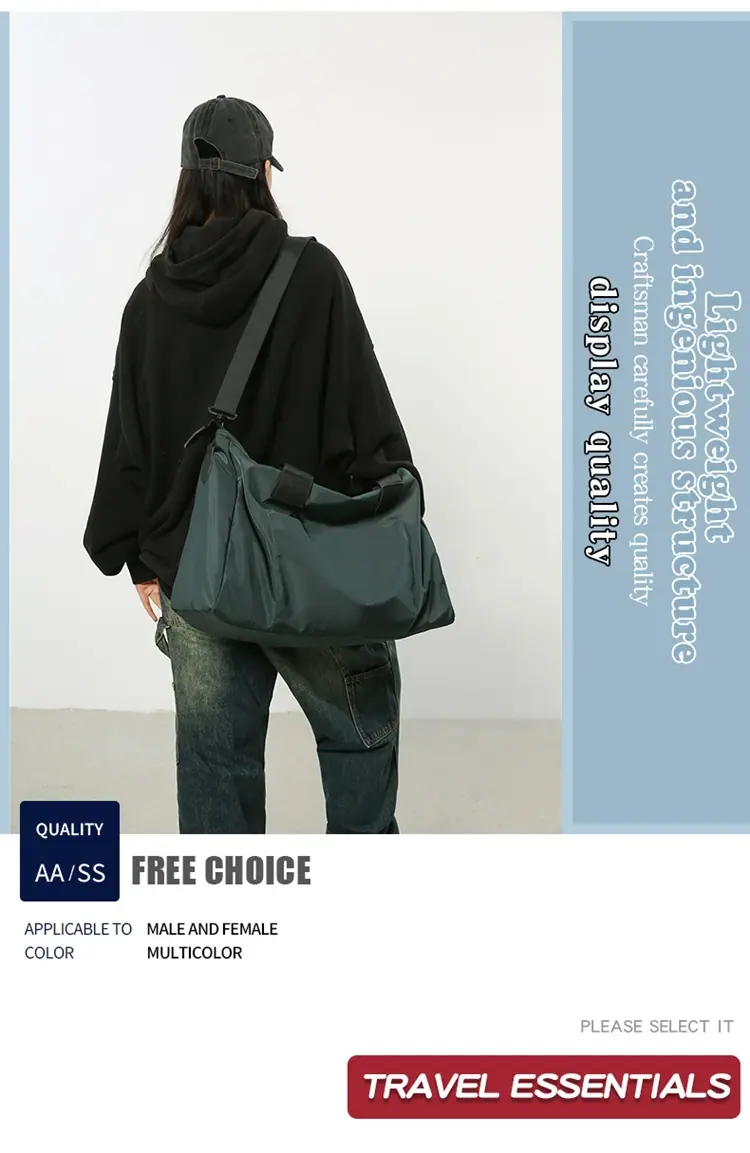 Bolsa de Viagem Curta para Viagem de Negócios Bolsa de Mão Feminina Bolsa de Bagagem Masculina Leve de Grande Capacidade Transversal de Ombro Único Bolsa Esportiva de Fitness