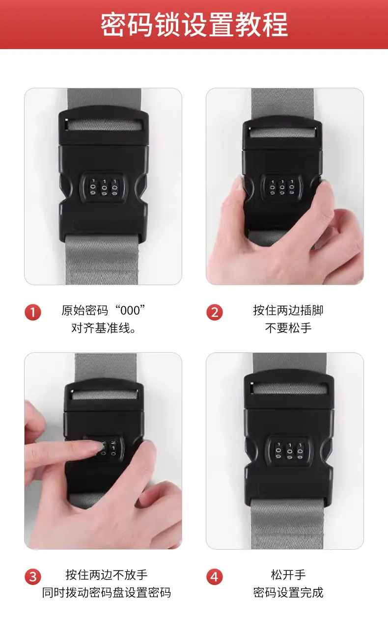 Personalização de Cor do Fabricante Grupo de Viagem Bagagem Fixa Segurança Cruz Senha Cinta de Amarração Viagem Check-in Cinto de Embalagem