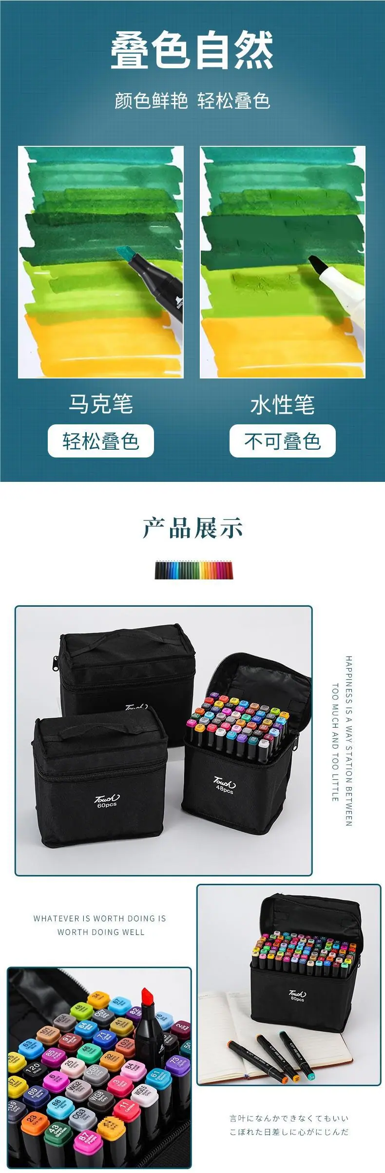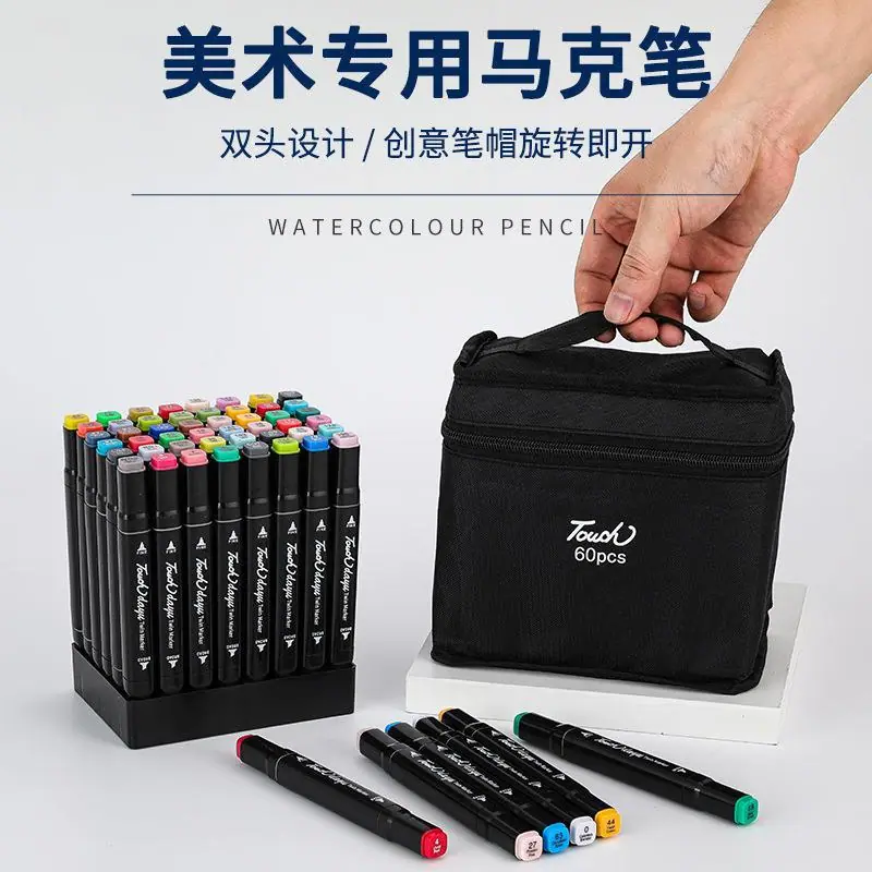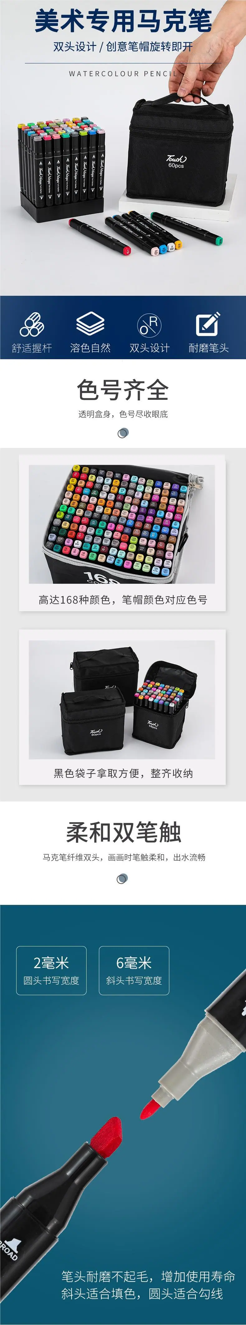 Atacado de fábrica conjunto de canetas marcadoras de ponta dupla caneta aquarela oleosa pintura a cores estudante álcool animação direta para crianças
