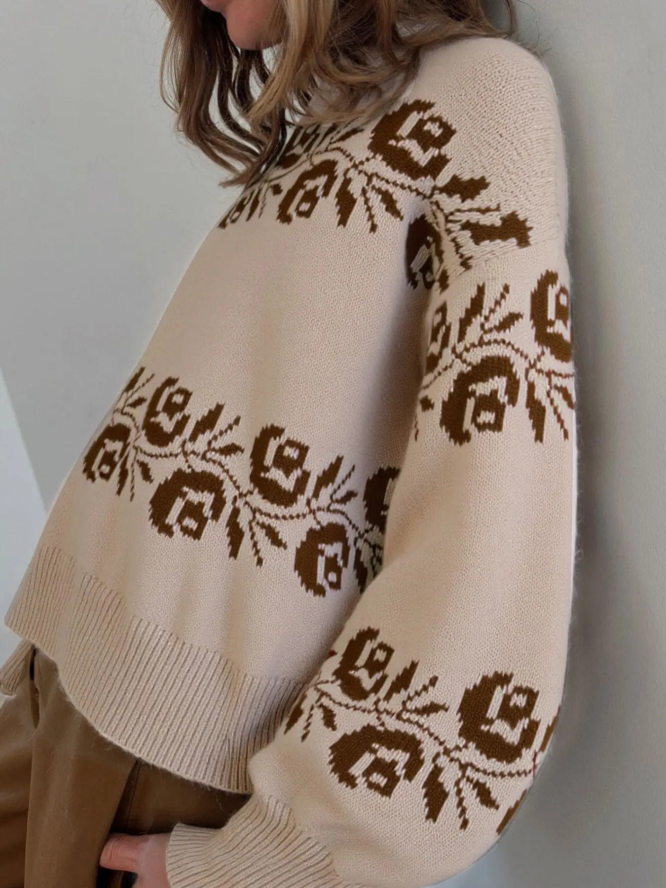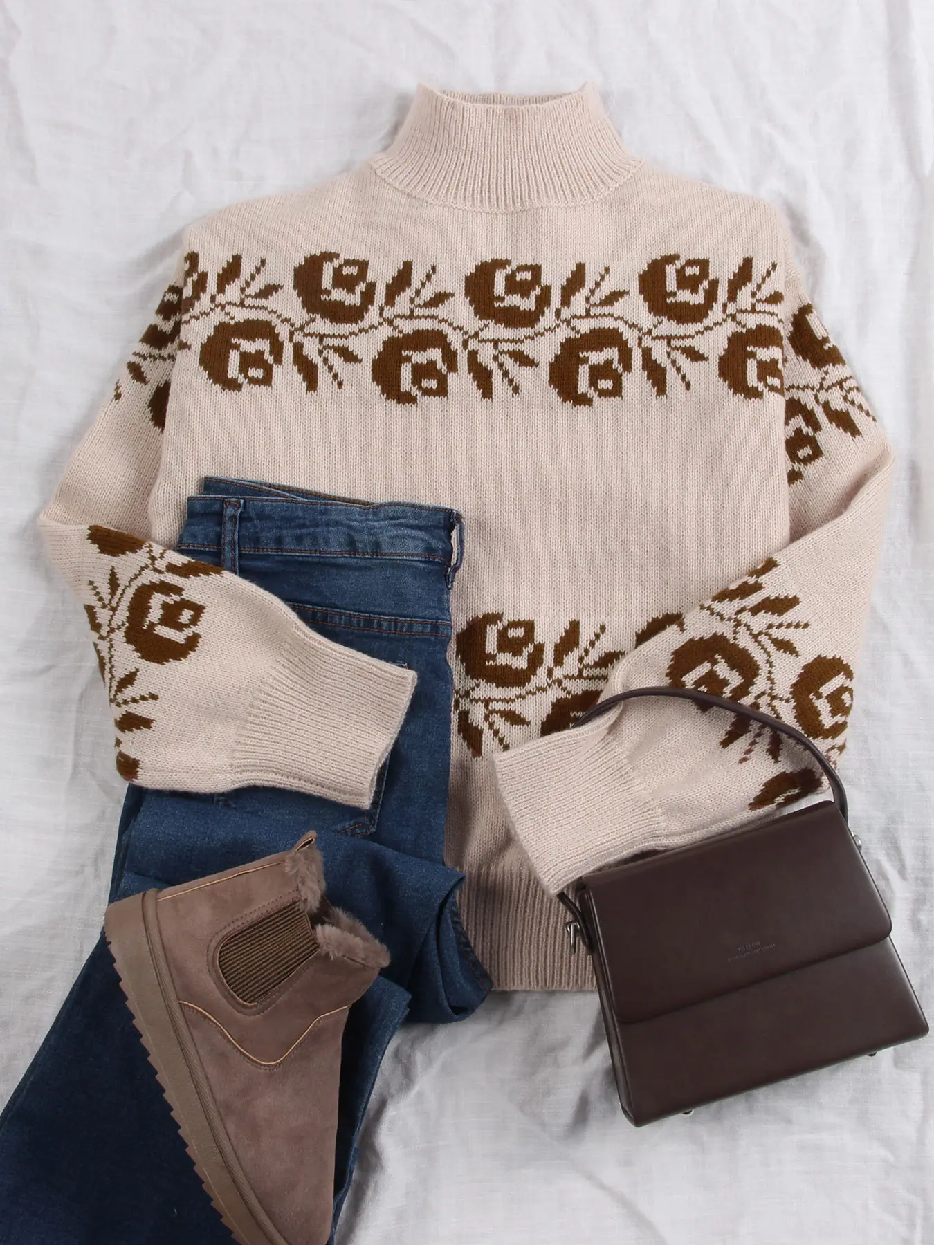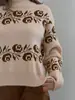 Suéter Tricotado Pulôver Feminino Moda Outono e Inverno Novo Estilo Europeu e Americano Transfronteiriço Amazon Gola Semi-Alta Solto Bordado