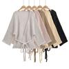 Nova Moda Outono Menina Solta Tricô Vazado Moda Versátil Top Jaqueta Longa com Cadarço de Renda Francesa