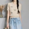 Top de Tricô de Manga Curta com Laço Retrô Francês de Verão 2026 para Mulheres, Camiseta Básica Popular Estilosa Juvenil Elegante