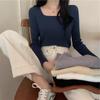 Compre 2025 Novo Design de Outono e Inverno Nicho Gola Quadrada Manga Longa Tricotado Camiseta Base para Mulheres, Top Versátil Slim-Fit no atacado no Joom.pro