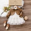 Vestido Fofo de Outono e Inverno para Meninas 2025 Novo Estilo Princesinha Bebê Estilo Coreano Conjunto de Duas Peças Roupa Infantil