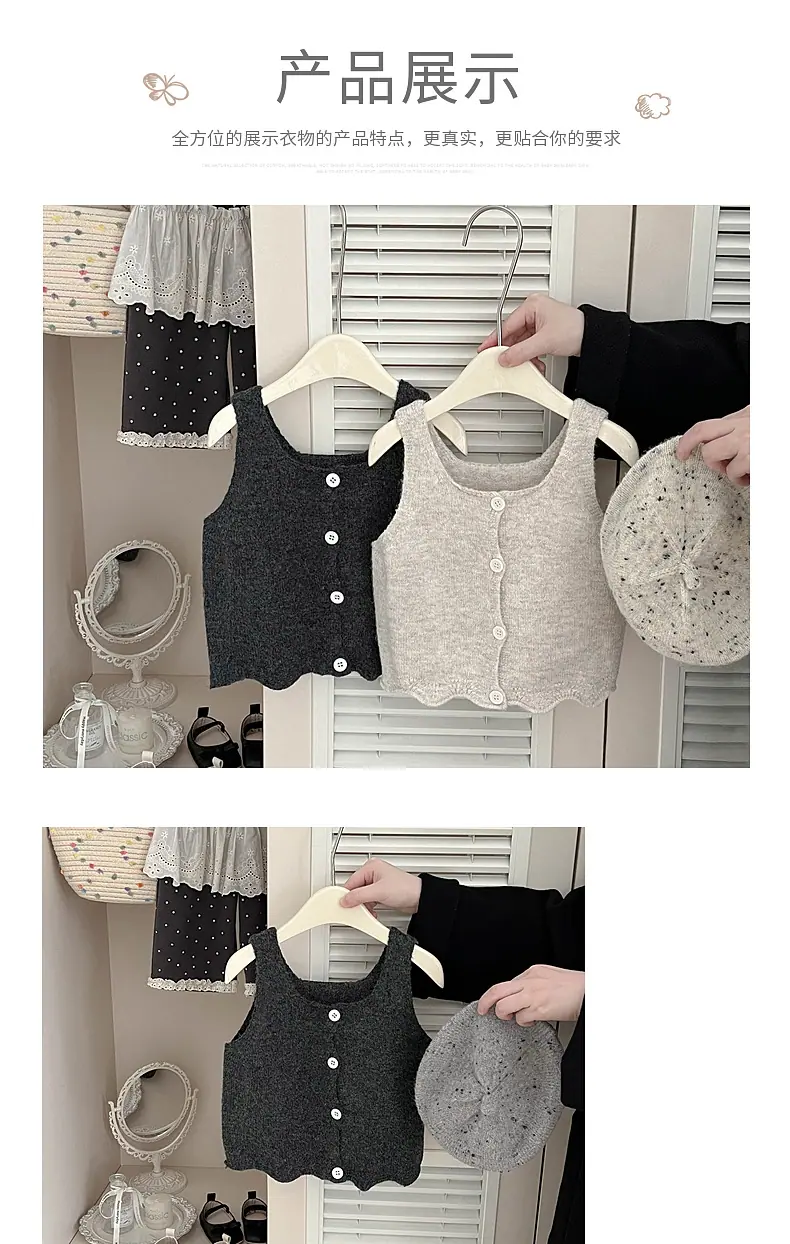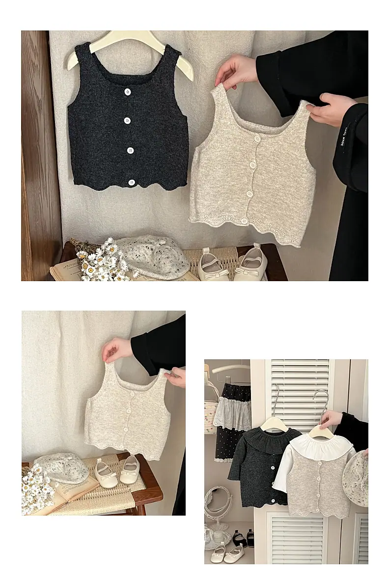 Colete de Outono para Meninas Roupas de Primavera Novas para Crianças Cardigã de Tricô da Moda Roupa Estilo Coreano Colete Infantil