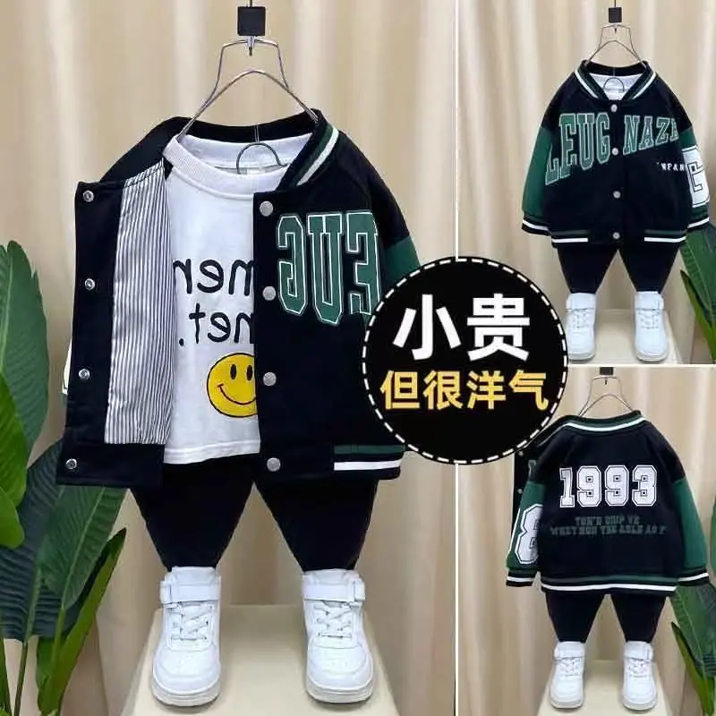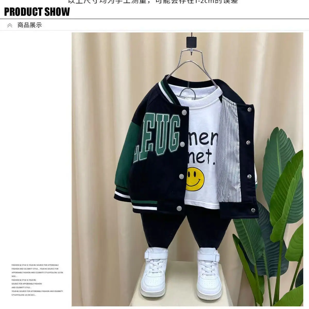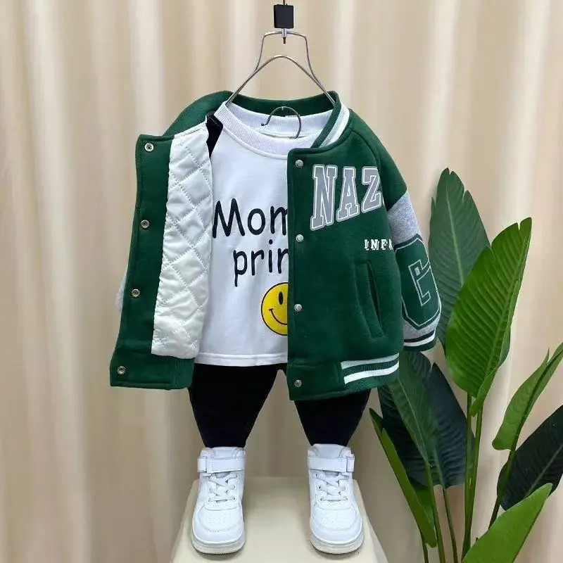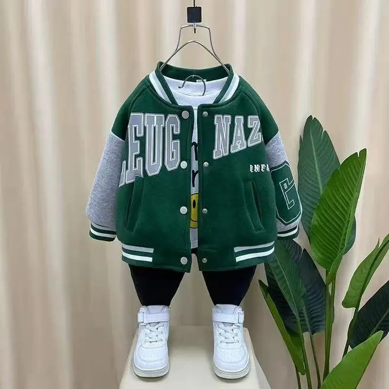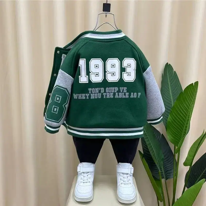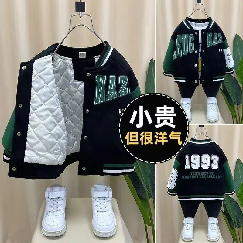 Roupa Exterior para Meninos Outono e Inverno Novo Casaco de Beisebol Quente Espesso Acolchoado de Algodão Infantil Moderno e Bonito