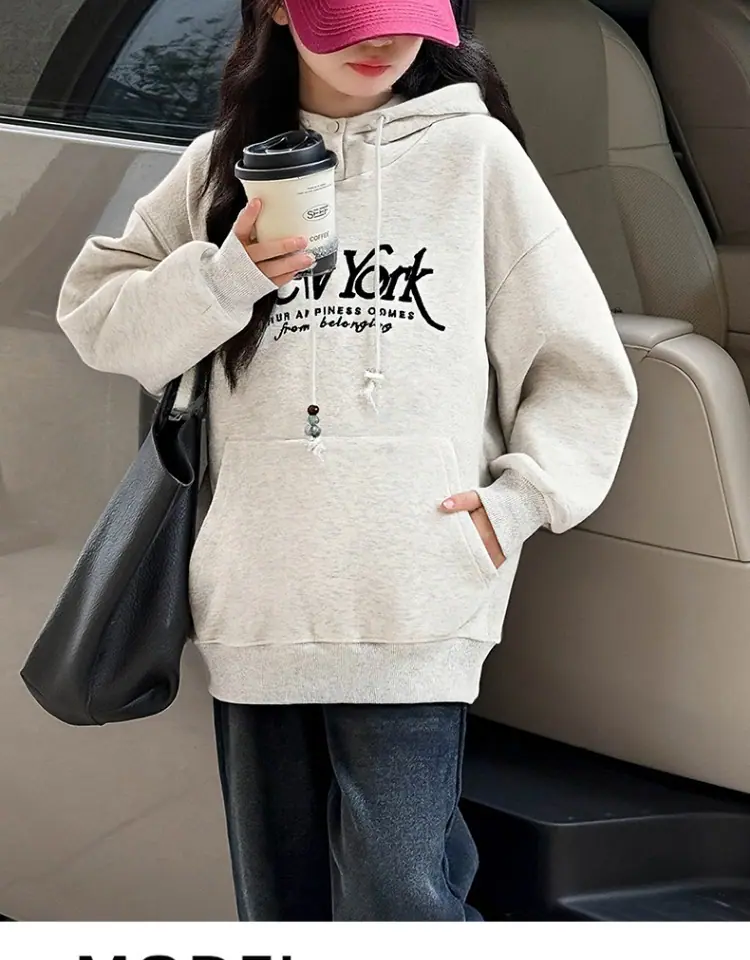 Moletom Fleece para Meninas Estilo Outono e Inverno 2025 Novo Estilo Moda Infantil para Meninas Roupas de Inverno Modernas Top Grosso de Inverno Infantil para Meninas Grandes