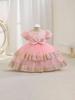 Novo Vestido de Menina Outono com Laço Vestido de Bebê Princesa Vestido Formal Infantil Saia Tule Roupas Infantis Fofas