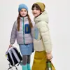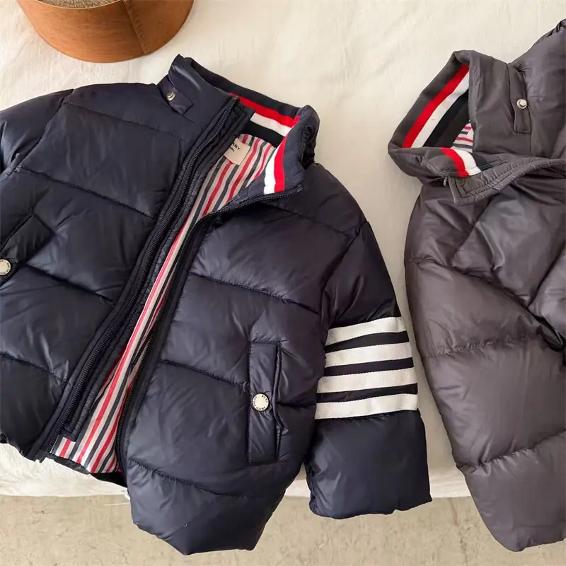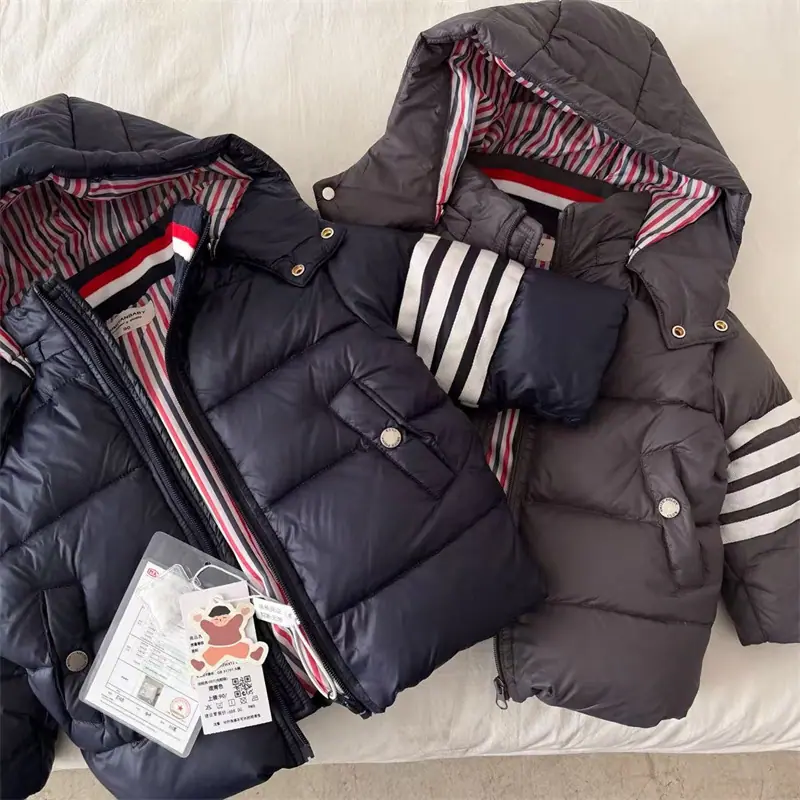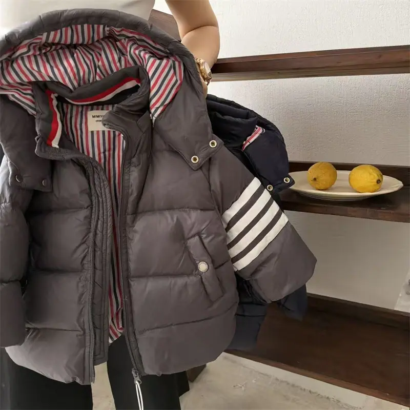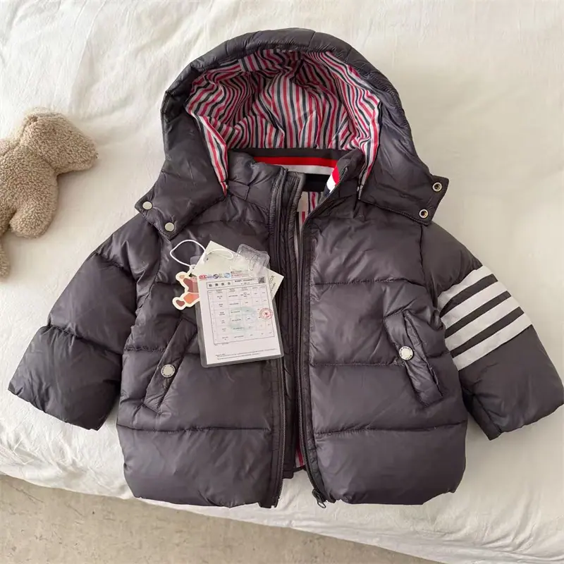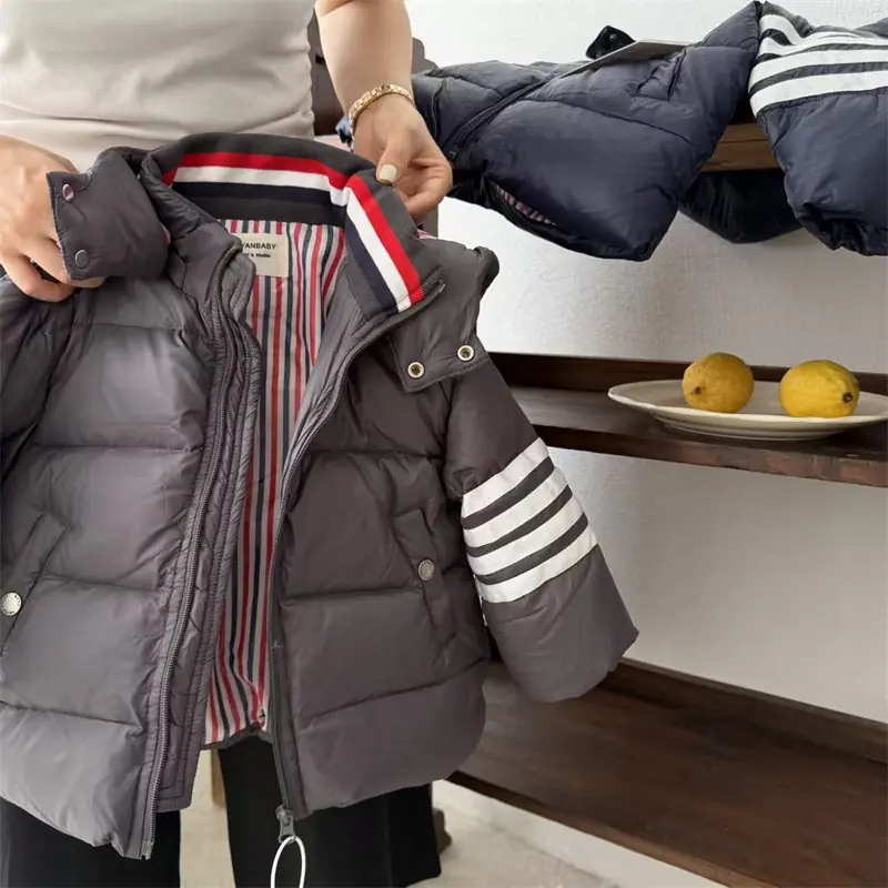 Jaqueta Infantil de Penas 2025 Olho Fenda Inverno Novo Produto Meninos e Meninas Estilo Coreano Jaqueta de Penas com Capuz Casaco Curto para Bebê
