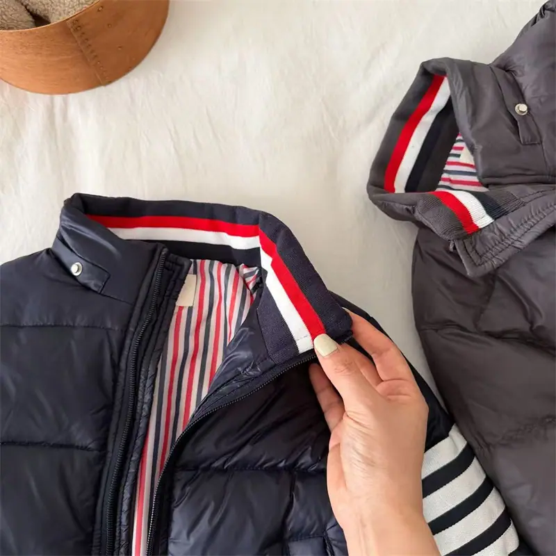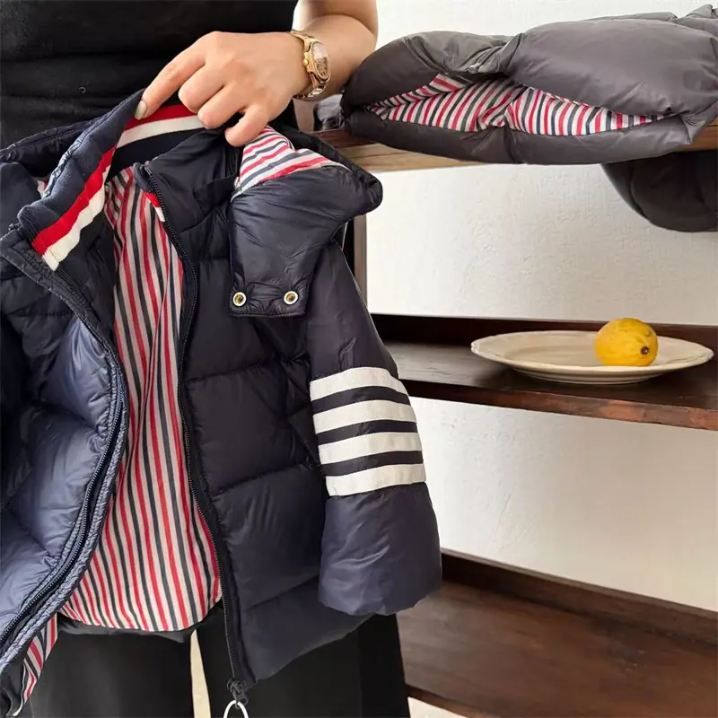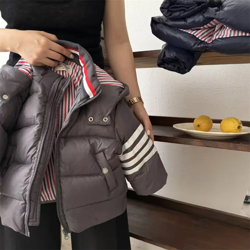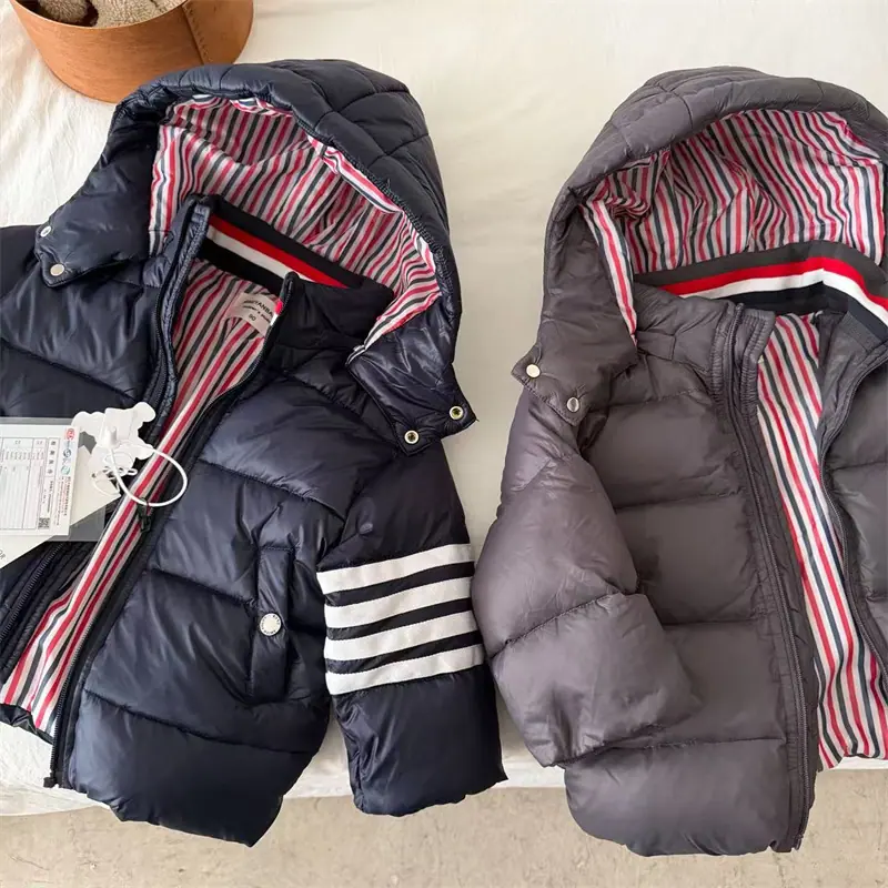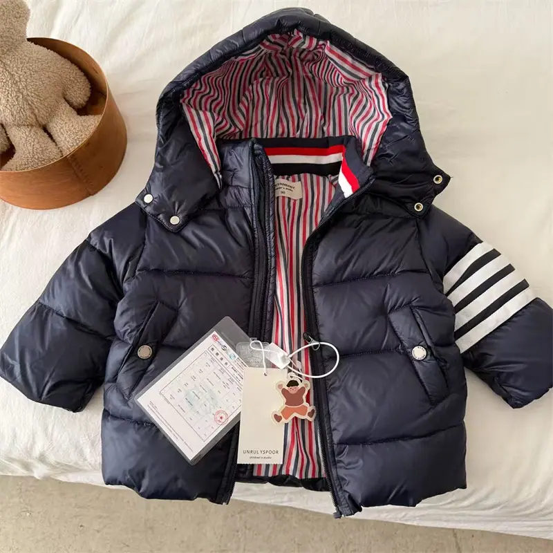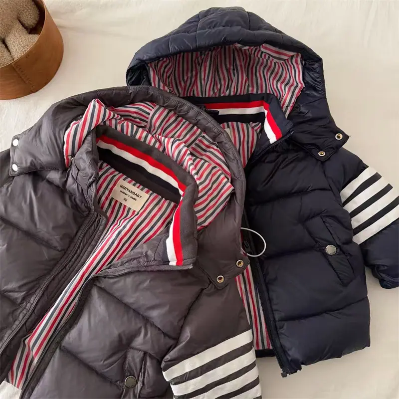 Jaqueta Infantil de Penas 2025 Olho Fenda Inverno Novo Produto Meninos e Meninas Estilo Coreano Jaqueta de Penas com Capuz Casaco Curto para Bebê